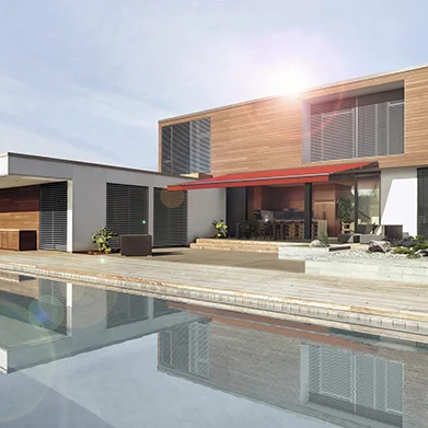 Sie lieben es puristisch und geradlinig? Dann wird Sie diese Kassetten-Markise begeistern. Mit ihrer eckig-kompakten Bauform passt sie sich nahtlos in kubische Architekturen mit Flach- oder Pultdach ein.